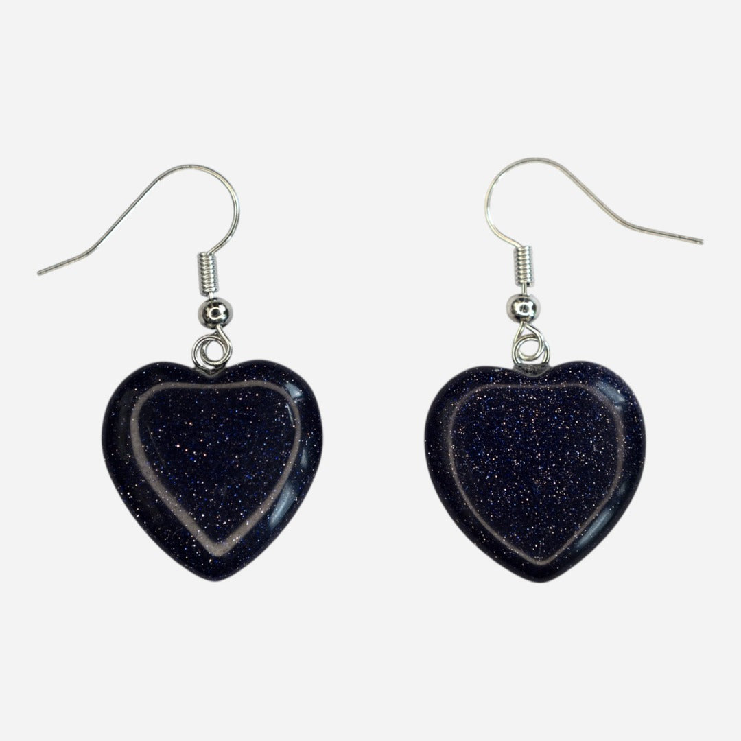 Blue Goldstone Heart Manmade Gemstone Earrings with Pouch