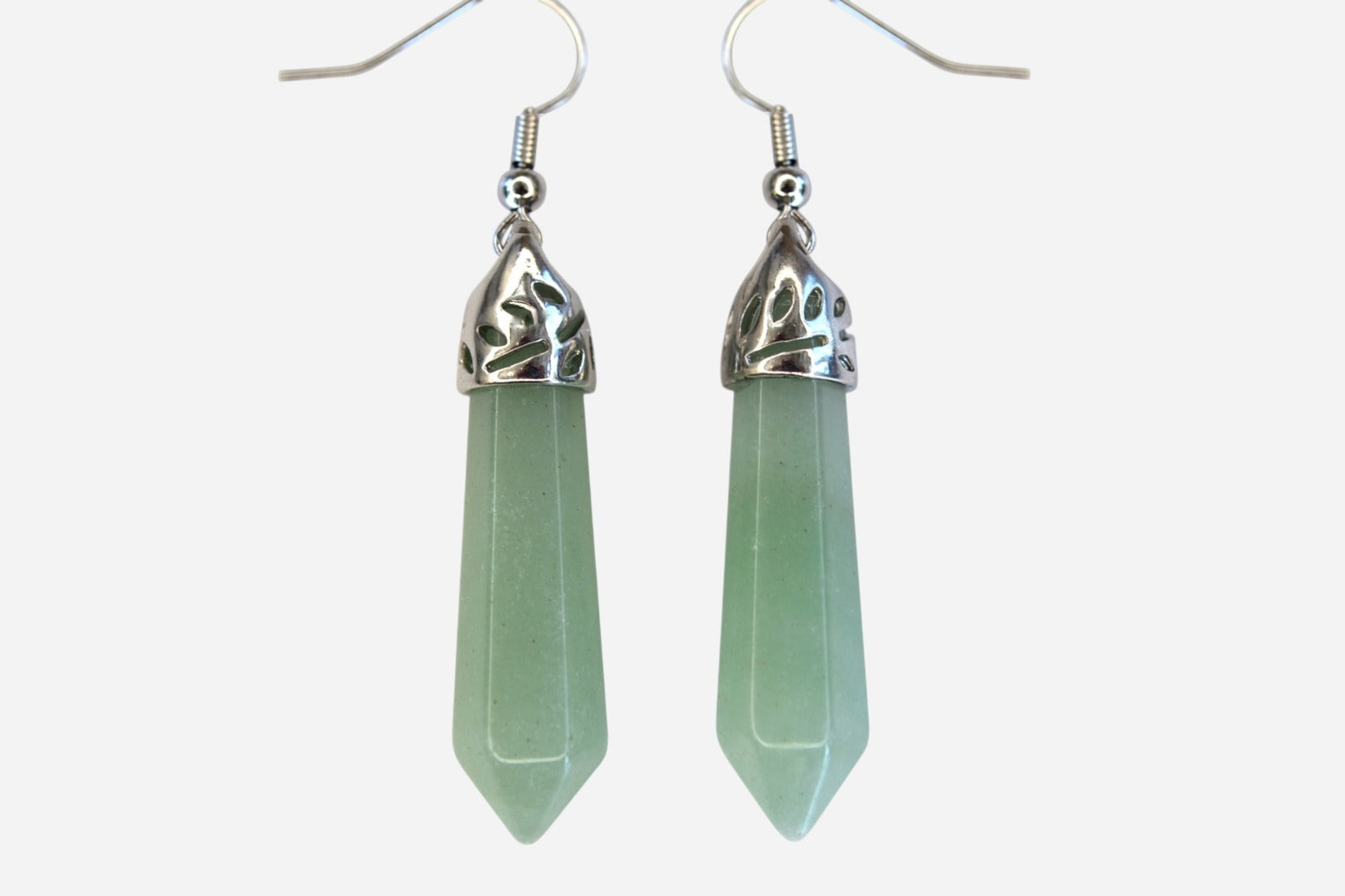 Green Aventurine Earrings Hexagonal Shape Natural Gemstone Silver Plated Chakra Reiki
