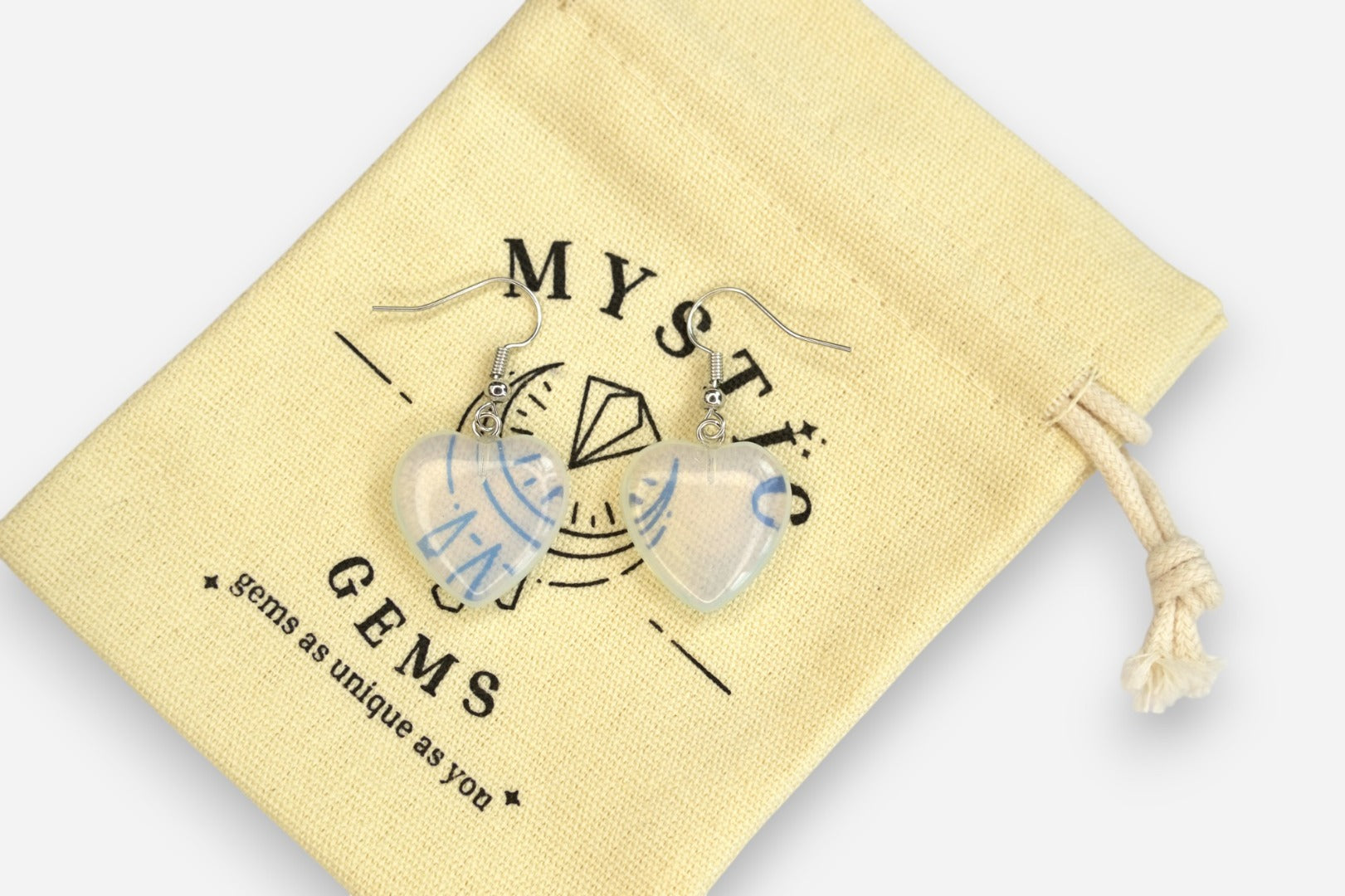 Opalite Heart Manmade Gemstone Earrings with Pouch